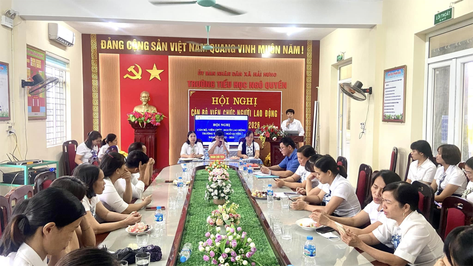 Thực hiện chỉ đạo của Sở Giáo dục và Đào tạo Hải Phòng, Đảng ủy - Uỷ ban nhân dân xã Hải Hưng, chiều ngày 06 tháng 10 năm 2025, Trường Tiểu học Ngô Quyền long trọng tổ chức Hội nghị cán bộ, viên chức, người lao động năm học 2025–2026.